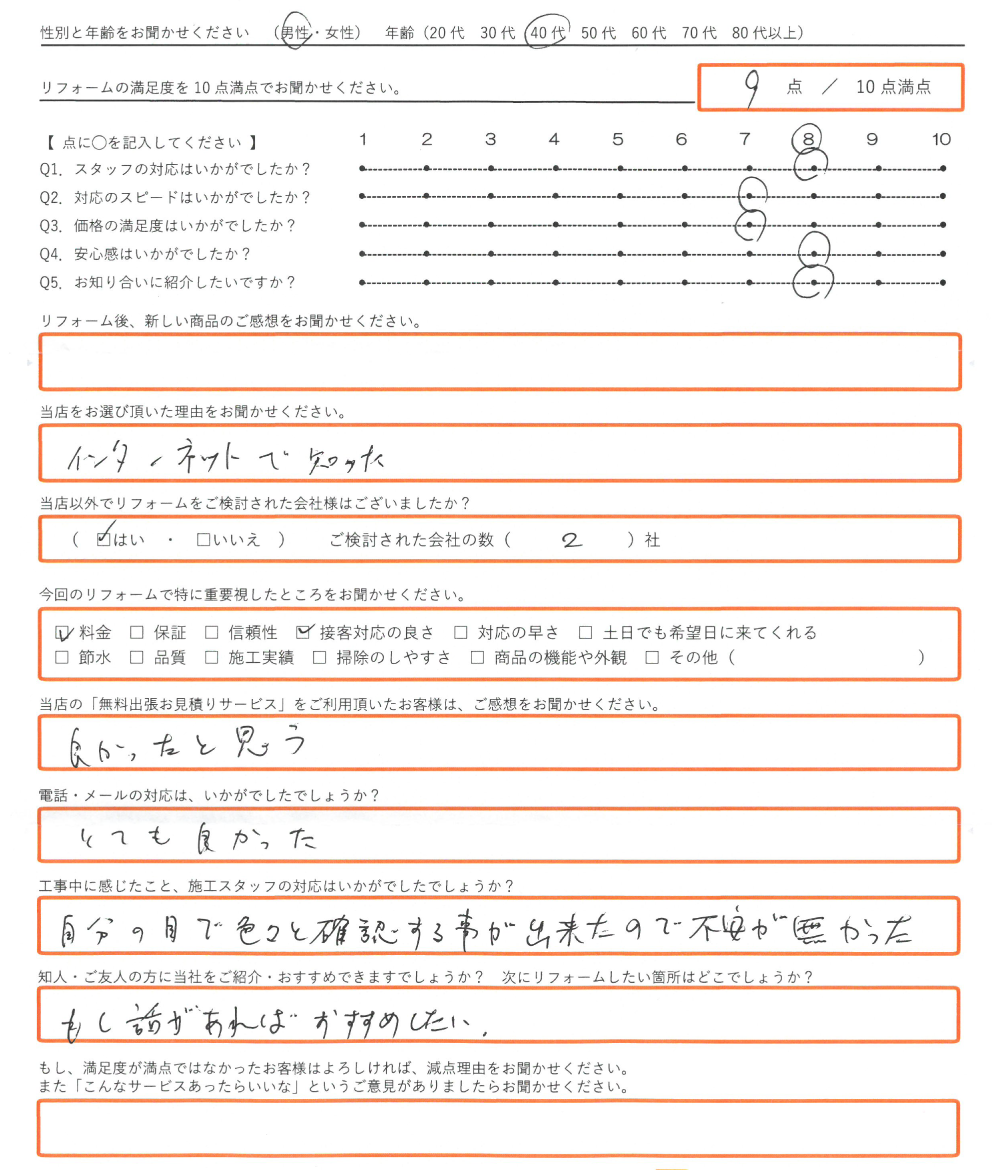 直筆のアンケートリフォーム情報施工日:2020年8月4日場所:備前市リフォーム内容:エコキュート入替使用したモデル:お客様情報性別・年齢:男性(40代)リフォームの満足度9点/10点満点中アンケートの内容リフォーム後、新 ...