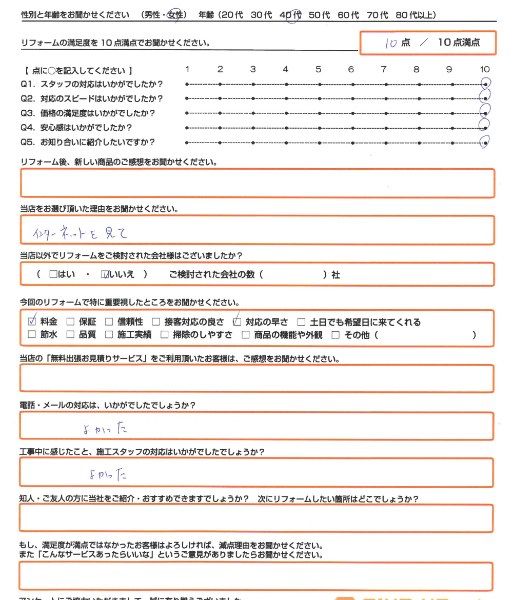 直筆のアンケートリフォーム情報施工日:2020年2月12日場所:相生市リフォーム内容:エコキュート交換使用したモデル:お客様情報性別・年齢:女性(40代)リフォームの満足度10点/10点満点中アンケートの内容リフォーム後 ...