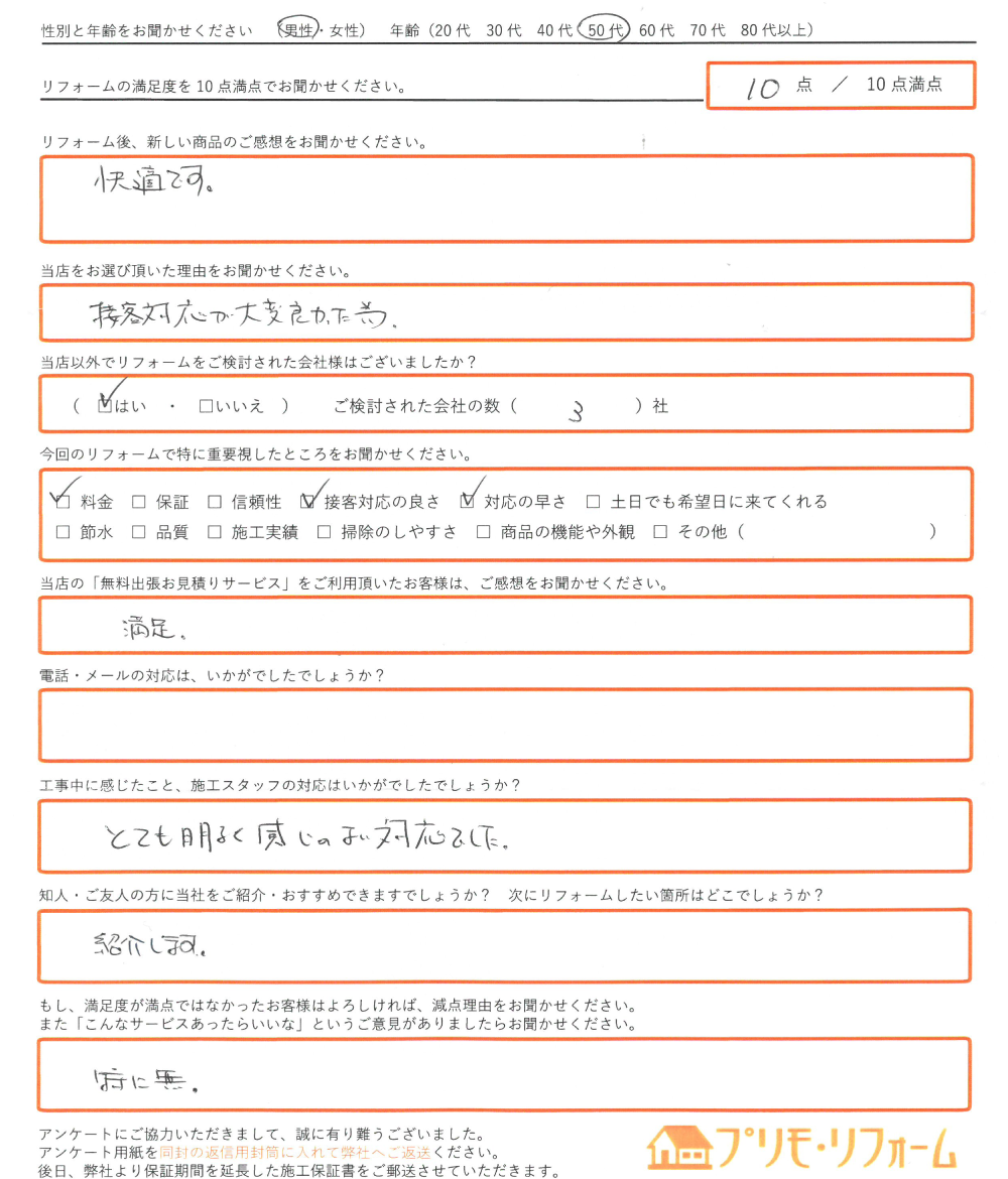 直筆のアンケートリフォーム情報施工日:2019年11月12日場所:姫路市リフォーム内容:エコキュート入替使用したモデル:お客様情報性別・年齢:男性(50代)リフォームの満足度10点/10点満点中アンケートの内容リフォーム ...